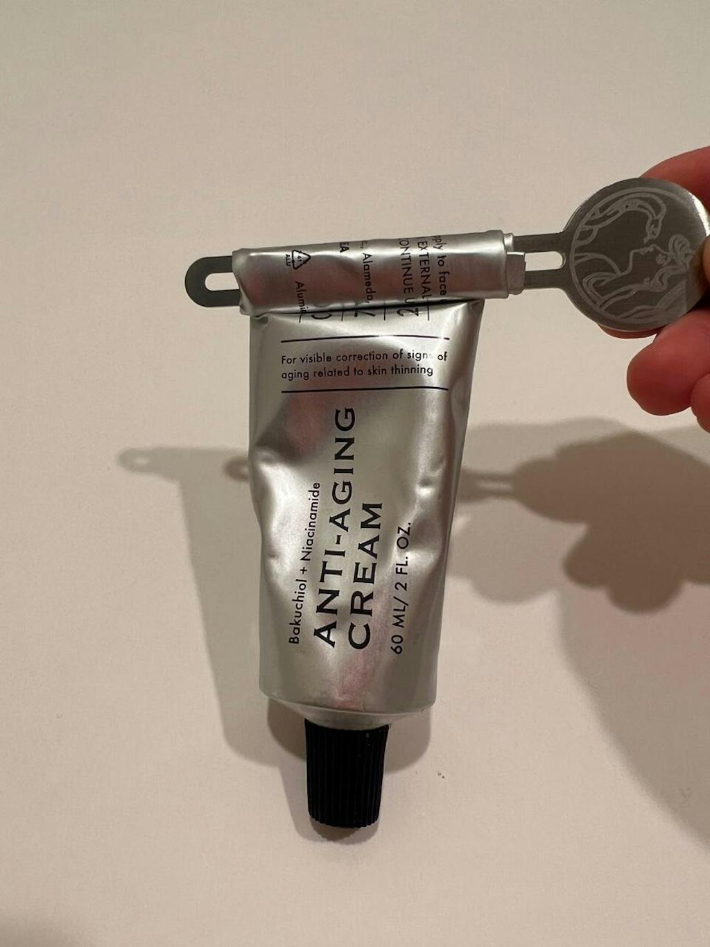 The stainless-steel wringer is designed to help you squeeze the aluminum tube more easily and efficiently, so you can get the most out of your cream without waste. It’s not necessary to use, but it makes it much easier to press out every bit of product, especially as the tube gets emptier over time.