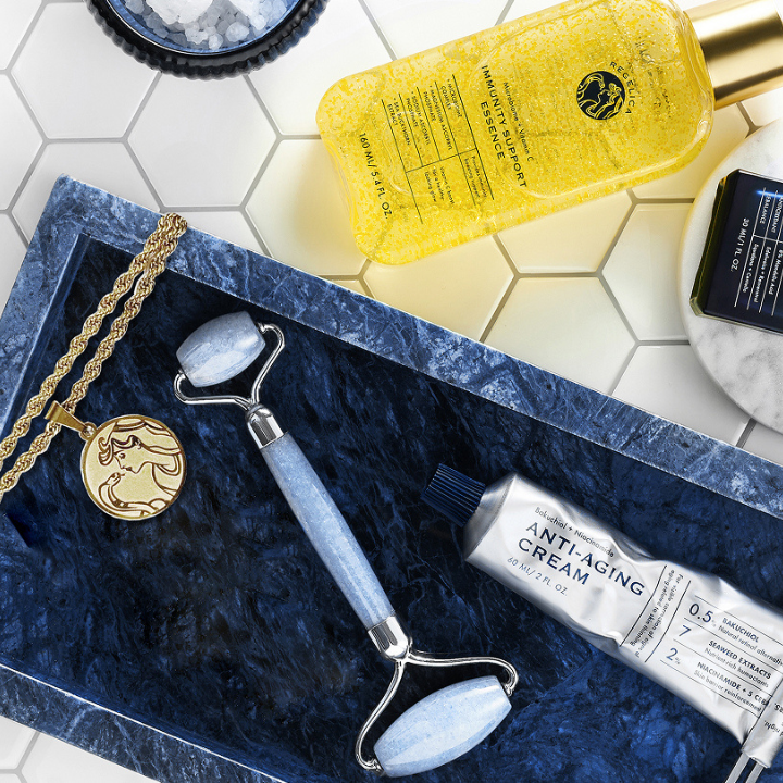 This delicate gold-tone necklace features the Regelica Goddess — our muse who inspired our brand. In our mythology, she tames the serpent, symbolizing the quiet strength to face aging without fear.